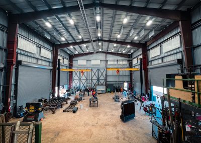 In an era where new and better ways of construction are evolving, building large volume spaces for the purpose of metal fabrication requires robust, long-lasting construction to support heavy loads and extreme conditions to cater to large doors, cranes, and high ceilings. This is a task that can be considered a major challenge in areas with highly expansive soils where rigidity and structural support are essential to the building function. The inherent ability of a reinforced rigid concrete ICF Envelope to withstand building and soil movement by supporting the foundation underneath via suspended & compression was vital to this building’s success. Specialized Construction Services new facility incorporates six oversized doors that enables passive ventilation in the shop area and includes adjacent administration offices. The completed result delivers a unique architectural design for rural industrial applications that effectively combines ICF with steel construction and now establishes the new corporate identity for specialized construction service as their base of operations.